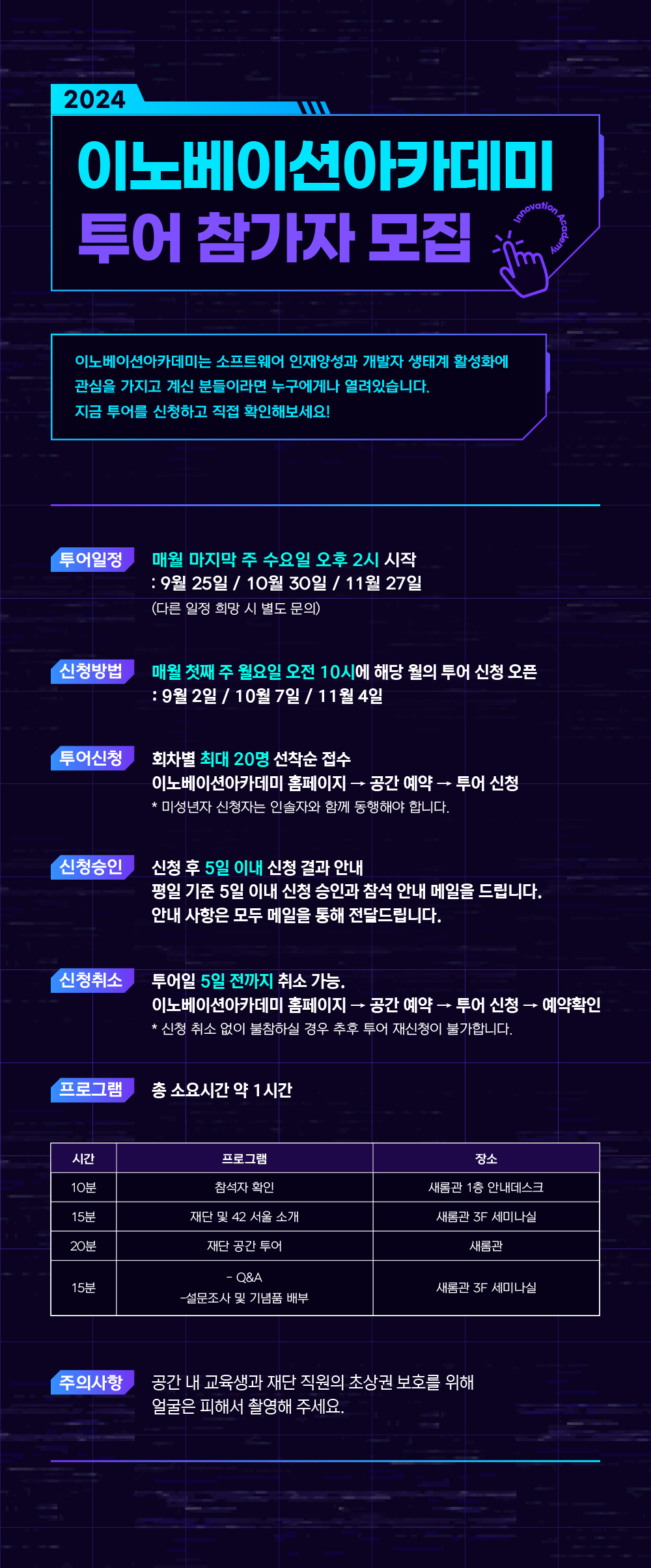 - [이노베이션 아카데미] SW인재양성 이노베이션아카데미 10월 투어 모집 중!