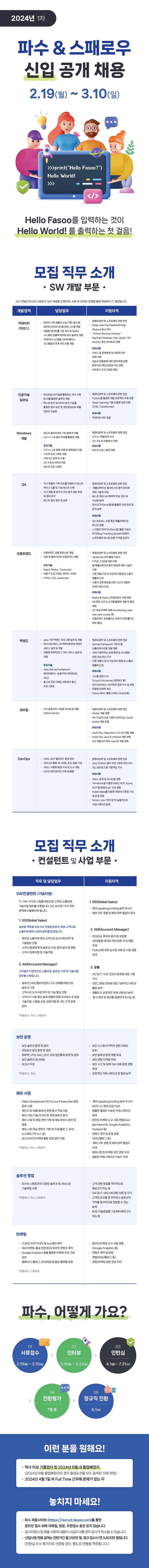 - [파수&스패로우] 2024년 1차 신입 공개 채용(~03/10)