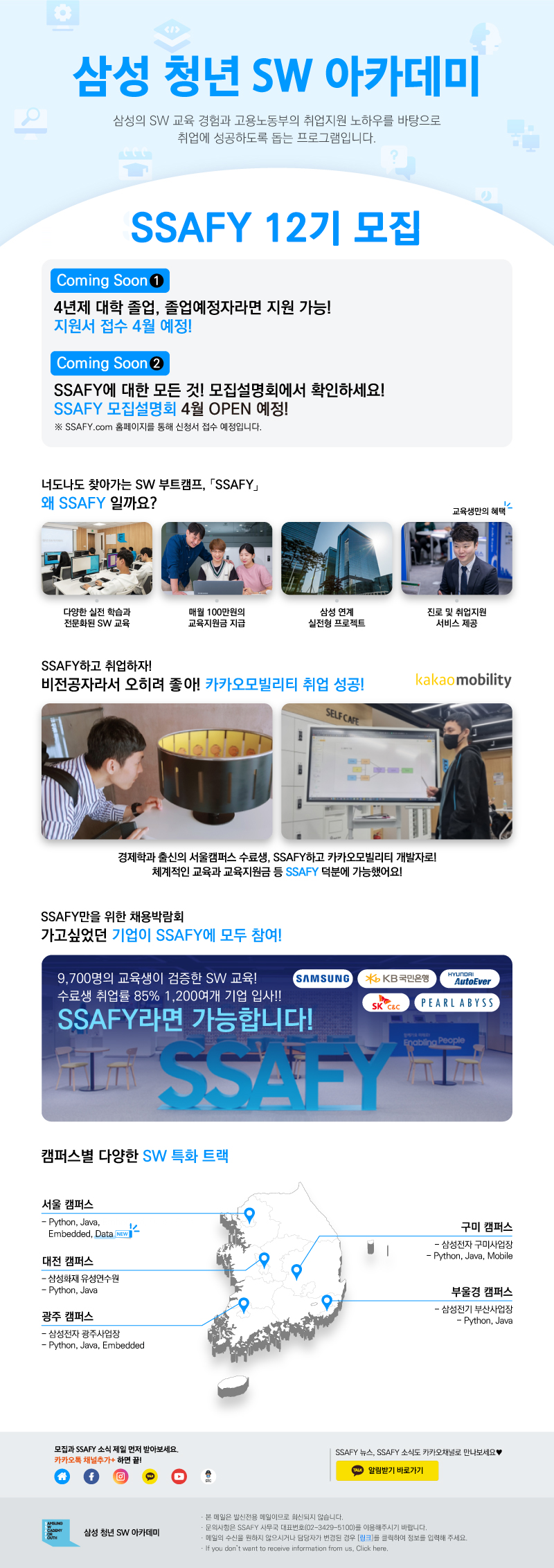 - 「삼성 청년 SW 아카데미」12기 교육생 모집! Coming Soon!